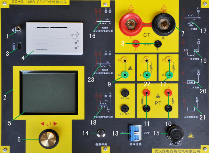 CT/PT互感器特性測試儀面板結構與注釋