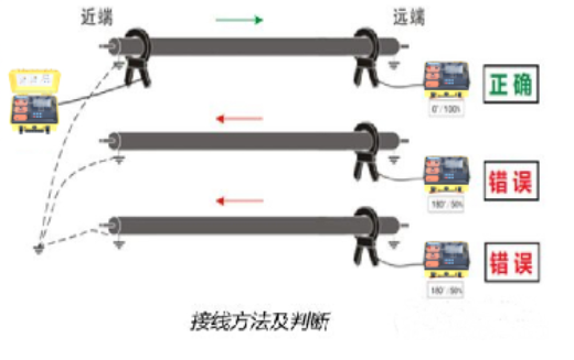 對于電纜識別,我們可以分為帶電識別和帶電識別。在尋找運行電纜時,我們采用電纜標識符的耦合方式,發射鉗夾住電纜的起始端,通過信號發射器向電纜饋送周期性的單極電壓脈沖;電纜停電或未通電時,可采用直接連接方式,信號發射器通過導線直接向電纜銅芯施加脈沖信號。在末端測量時,我們使用接收鉗夾住電纜。當從測量電纜中檢測到脈沖信號時,接收器的刻度盤指針將偏轉到“正確”一側,否則,該電纜的刻度盤指針將指向“錯誤”一側。在許多電纜中,我們可以通過排除法測量和識別來找到所需的電纜。搜索方法如下: