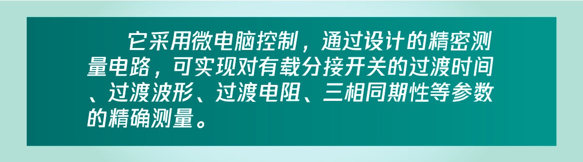 該儀器具有對所測數據進行顯示、分析、存儲、打印等功能。解決了目前電力變壓器有載分接開關測量方法落后,沒有專用測試手段的問題。可在電力設備預防性試驗及變壓器大修中及時診斷出有載分接開關的潛在故障,對提高電力系統運行的可靠性具有重要意義。