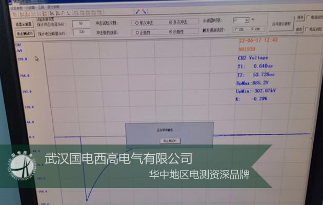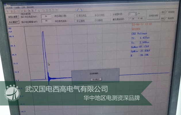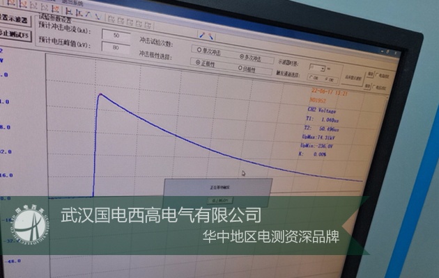 現場磨合試驗:30KV正負極性多次試驗(滿足T1=1.2±30%/T2=50±20%us/TC=2至6us)