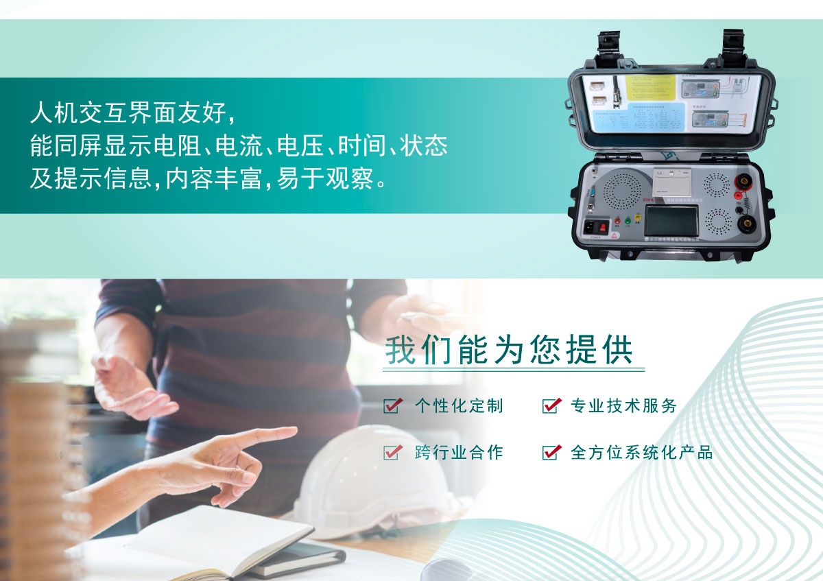 • 人機交互界面友好,能同屏顯示電阻、電流、電壓、時間、狀態及提示信息,內容豐富,易于觀察