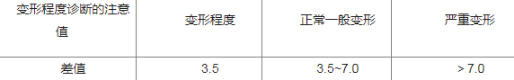 變壓器繞組發生變形后,還需要知道變形程度。變形程度按前述定義劃分為正常、中度變形、嚴重變形三種。診斷的注意值見表1。