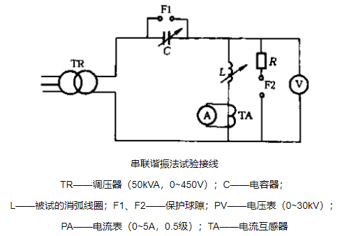 用串聯諧振法進行消弧線圈伏安特性試驗的方法