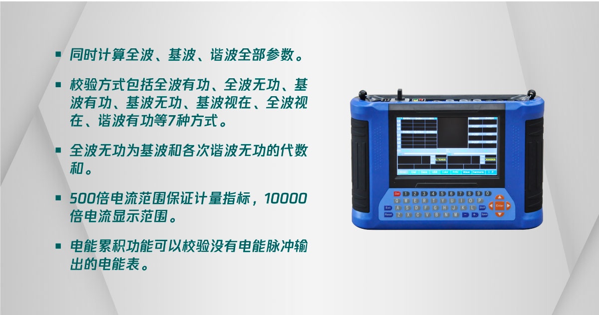 · 用于檢測電能表的準(zhǔn)確度等級(jí),是一種全數(shù)字化、多功能、精度、智能化的多參數(shù)測量儀器;
