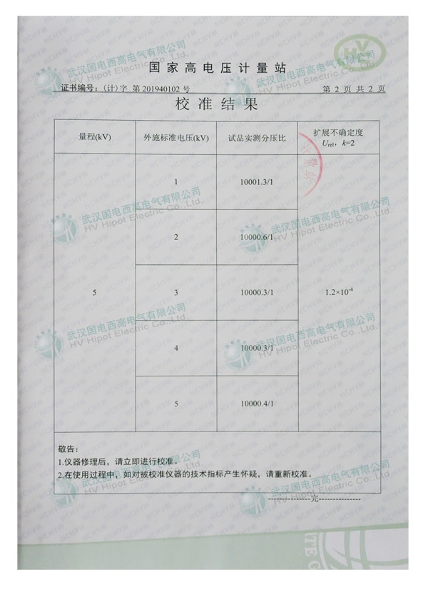 此次國家高電壓計量站動用精度為0.005%的標準電阻分壓器進行測量,測量結果該設備的精度達到0.02%,完全符合客戶要求。