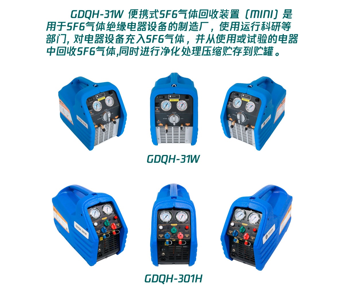 GDQH-31W 便攜式SF6氣體回收裝置(MINI) 是用于SF6氣體絕緣電器設(shè)備的制造廠,使用運行科研等部門, 對電器設(shè)備充入SF6氣體,并從使用或試驗的電器中回收SF6氣體,同時進行凈化處理壓縮貯存到貯罐。