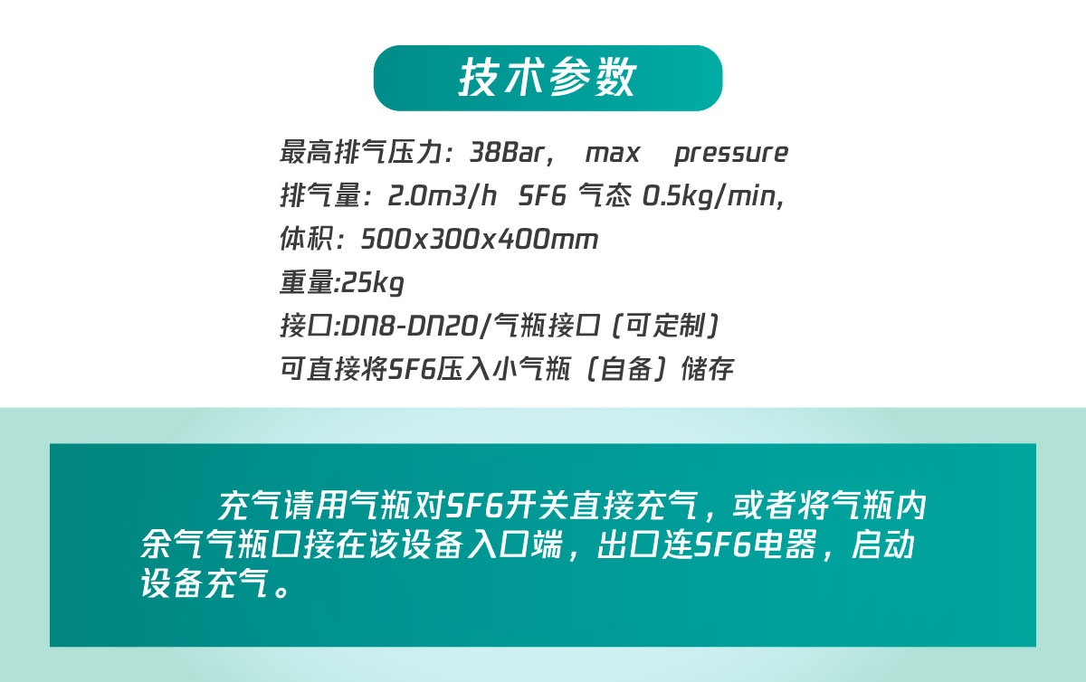 • 充氣請用氣瓶對SF6開關(guān)直接充氣,或者將氣瓶內(nèi)余氣氣瓶口接在該設(shè)備入口端,出口連SF6電器,啟動設(shè)備充氣。