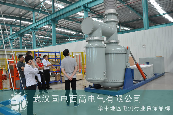 在參觀過程中,客戶對我司即將出口的新加坡的GIT(SF6移動式工頻耐壓局放試驗裝置)表現出濃厚的興趣。