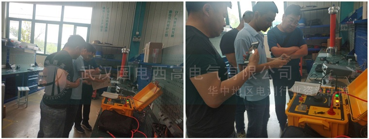 操作演示中我們做好設備的接線接地,隨后用公式計算出試驗所需的數據,然后調節好相關的試驗參數進行試驗。通過我們一遍一遍的演示和講解下,解決了客戶所遇到的技術難題。