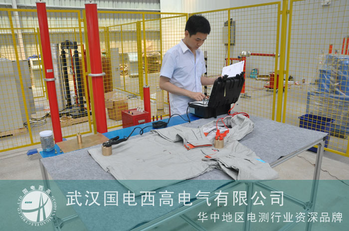 電阻試驗可采用GDZRS-2P屏蔽服電阻成套測試裝置進行測量。該儀器集直流電源、電壓表、電流表,電阻表于一體。具有儀器體積小、重量輕、準確度高的優點。